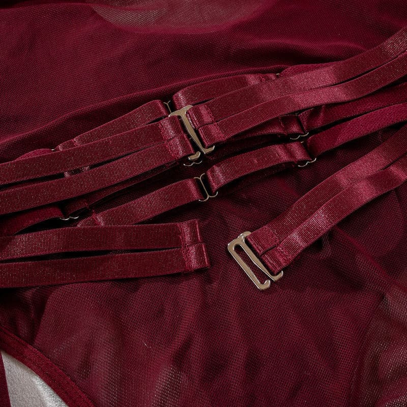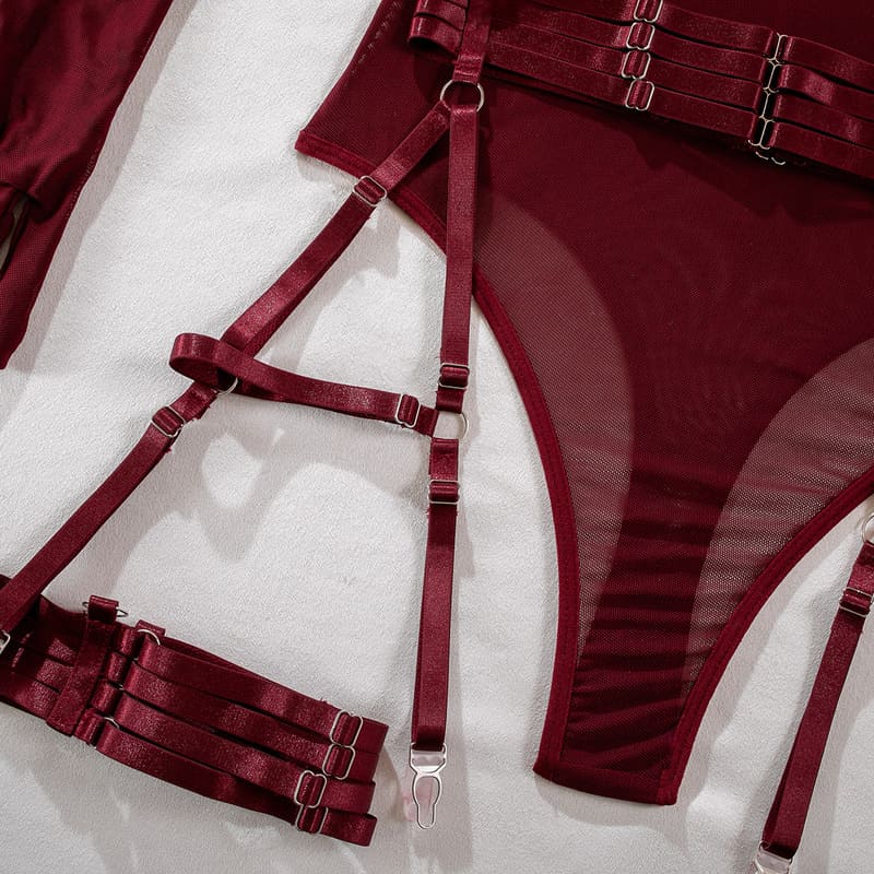 El Body Esencial Carmesí 3328 es una fusión perfecta entre fuerza y deseo, entre lo que se muestra y lo que se insinúa. Diseñado en un tono borgoña profundo que evoca pasión y sofisticación, este conjunto redefine la sensualidad contemporánea con su diseño translúcido, guantes largos y tiras regulables que enmarcan la silueta con precisión.