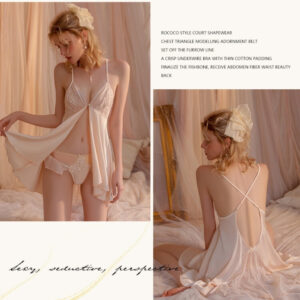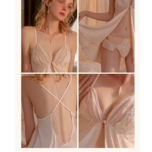 El Camisón Sexy de Encaje con Abertura Frontal y Espalda Descubierta – Renata está diseñado para resaltar la feminidad con un aire sofisticado y seductor. Inspirado en el estilo francés, combina la suavidad de un tejido satinado con delicados detalles de encaje, creando una pieza única para noches inolvidables.