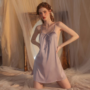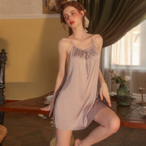 El Camisón Sexy de Satén con Espalda Descubierta – Camila es la combinación perfecta de elegancia minimalista y sensualidad moderna. Inspirado en el estilo europeo, su diseño liso con tirantes finos y un delicado lazo en el escote transmite frescura, sofisticación y un toque atrevido.