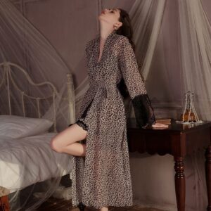 Camisón y Bata Animal Print con Encaje Negro – Modelo Desire 5147