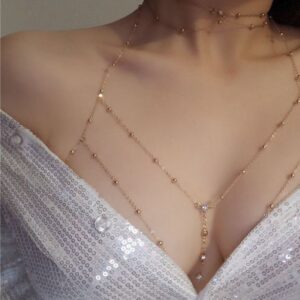 El Divine Chains 1271 es mucho más que un conjunto de collares: es una joya de diseño que transforma lo cotidiano en extraordinario. Su composición de cadenas finas, eslabones delicados y brillos estratégicamente ubicados crea una armonía visual que enmarca el escote con sutileza y magnetismo. Cada línea fue pensada para resaltar la feminidad con una dosis de misterio, delicadeza y poder personal.