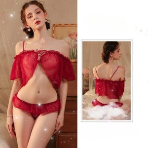 El conjunto Julieta es una fantasía hecha realidad: delicado, insinuante y con un toque romántico que hipnotiza. Diseñado para resaltar la feminidad con una silueta off-shoulder y transparencias estratégicas, esta pieza combina sensualidad con dulzura, perfecta para noches donde el deseo y la ternura se entrelazan.