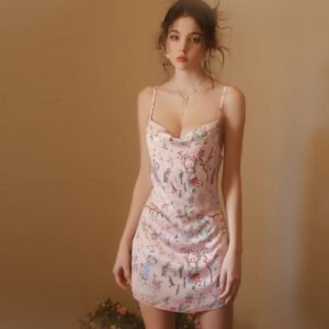Su escote en V realza el busto de forma delicada, mientras que la abertura lateral alta añade un toque atrevido que alarga visualmente las piernas.