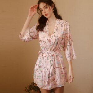 Set de Camisón y Bata de Satén Estampado Amelia 4947